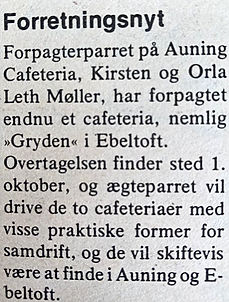 Det var to unge, erfarne mennesker på 35 år, der stod ved roret i Auning Cafeteria. De havde fulgtes ad på en række arbejdspladser gennem årene og havde det meste af tiden været selvstændige.