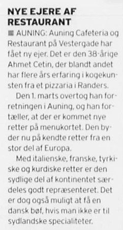 Den nye forpagter var fra Kurdistan, sammen med hans bestyrer Feti Caylak, ville han lave det om til en familierestaurant med dansk og kurdisk mad, selskaber og “mad ud af huset”. De kaldte det nu: Auning Cafeteria & Restaurant.