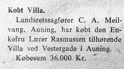 I 1912 annoncerede A. P. Petersen for sin forretning i Vestergade 9 med en del annoncer i Rougsø-Sønderhald Herreds Folkeblad.